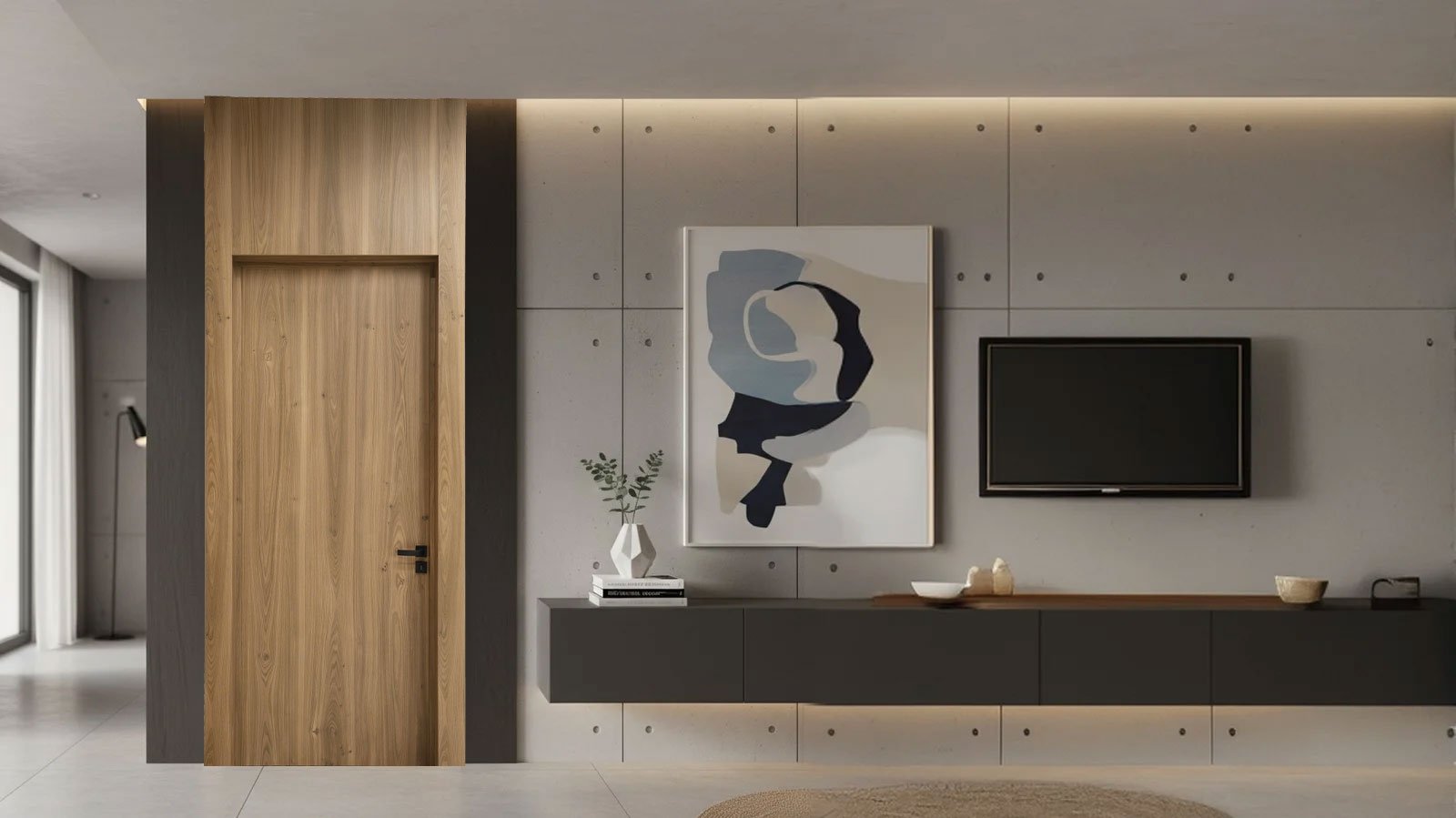 Dans un intérieur, la porte dessine des verticales. Elle dialogue avec le mobilier, l’éclairage, les ombres, les proportions. Elle accompagne la composition d’ensemble, comme un fil guidé par l’intention du projet.
