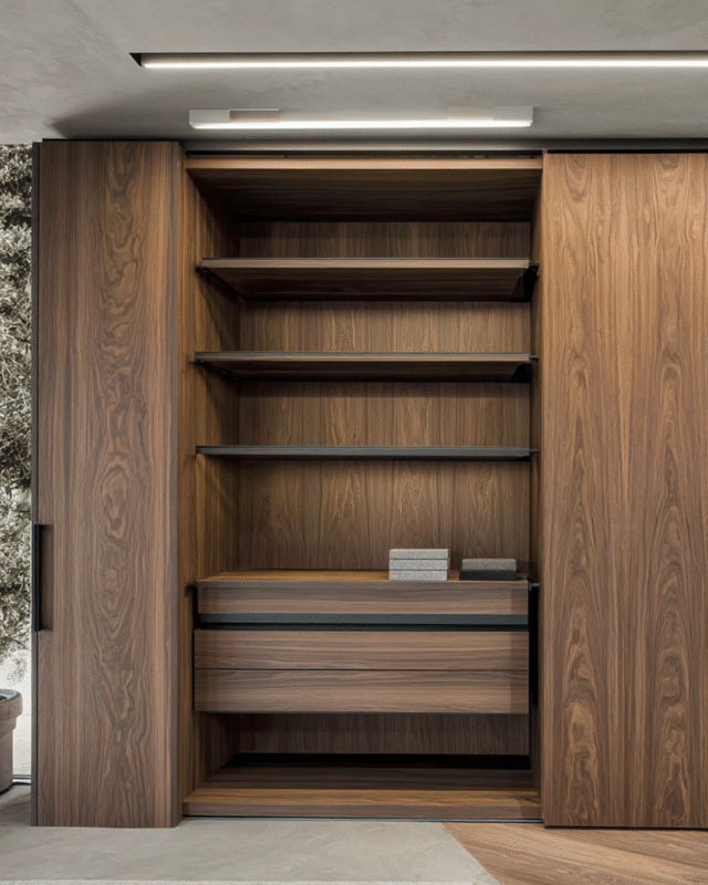 Un espace modulaire et personnalisable, conçu pour organiser chaque affaire avec précision et fluidité. Son agencement intelligent optimise le volume et offre une expérience fonctionnelle au quotidien. Une solution sur mesure, pensée pour habiller les pièces de vie avec style et praticité.